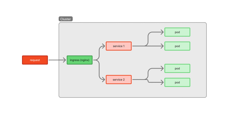 Ein Ingress ist ein Regelwerk. Man braucht einen Ingress Controller (z.B. Nginx), der die Regeln umsetzt.